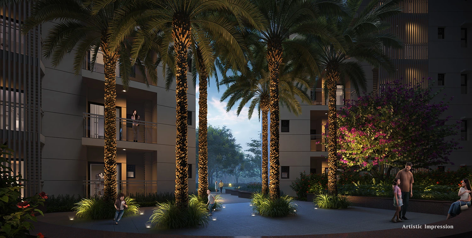 Spanning 6 acres, Eternia by Yatharth showcases six magnificent G+30 towers thoughtfully crafted to offer balance, openness, and comfort. Each tower is equipped with four high-speed elevators for seamless access, while the intelligently designed floor plans maximize usable spaceโgiving residents more room to live, relax, and thrive.